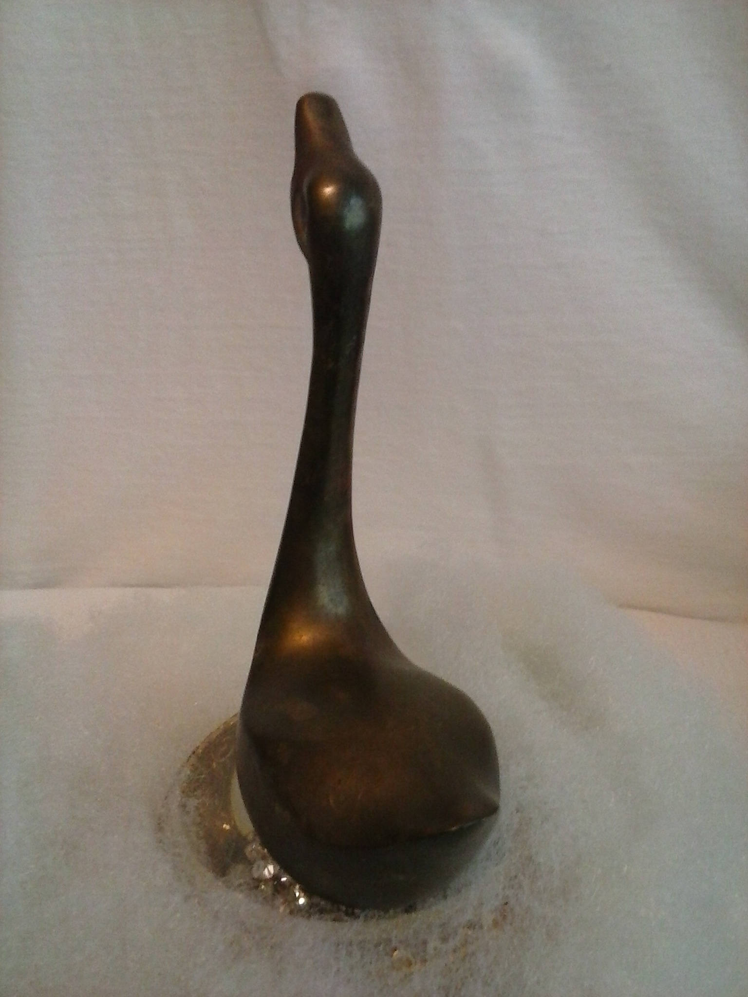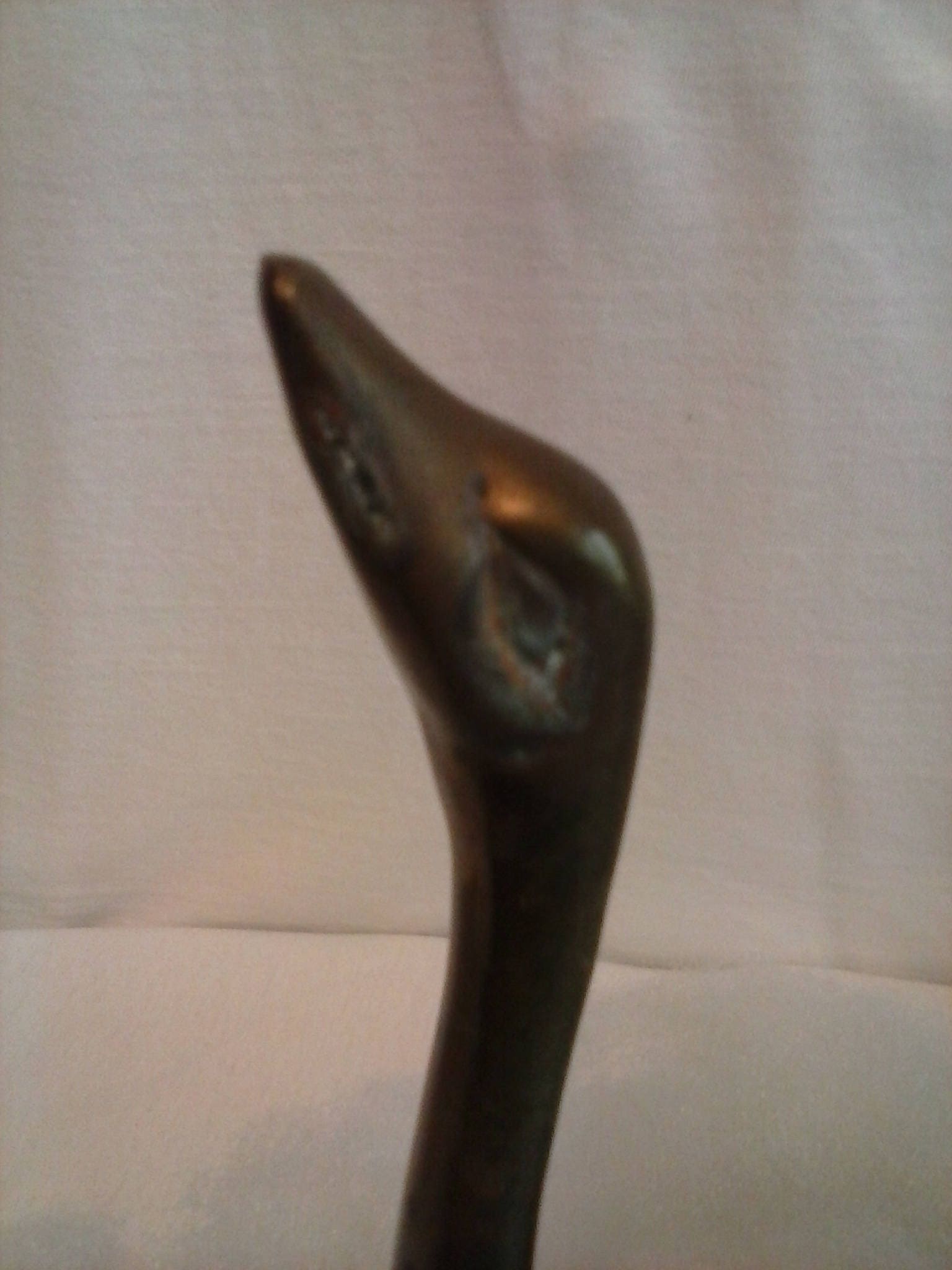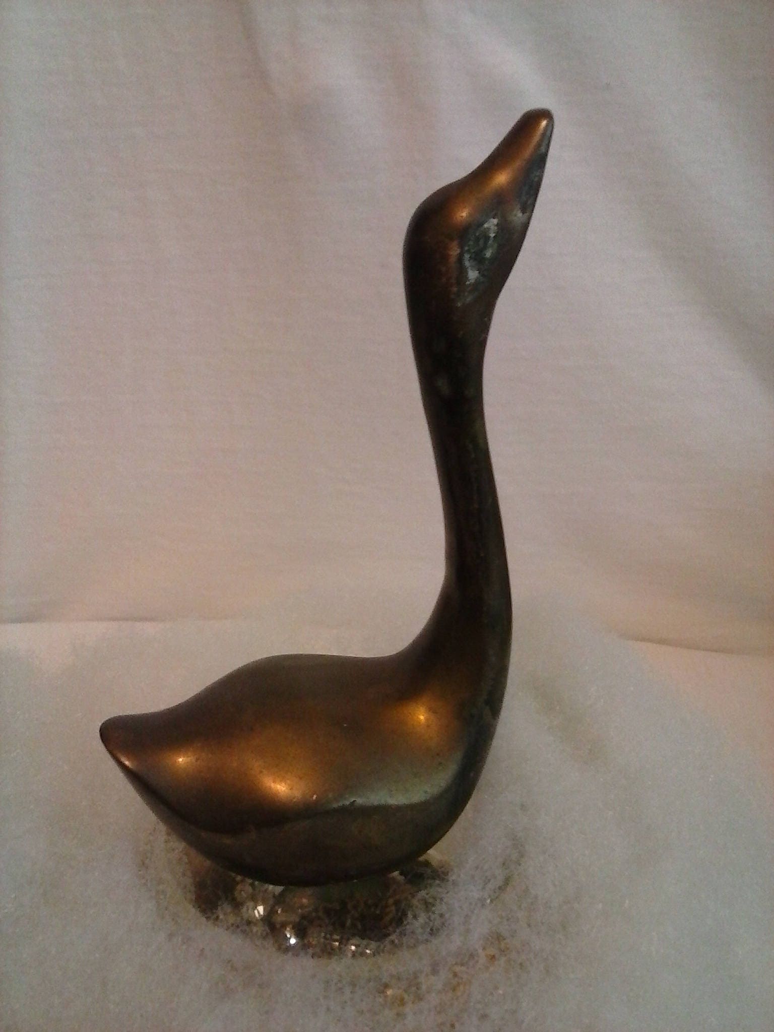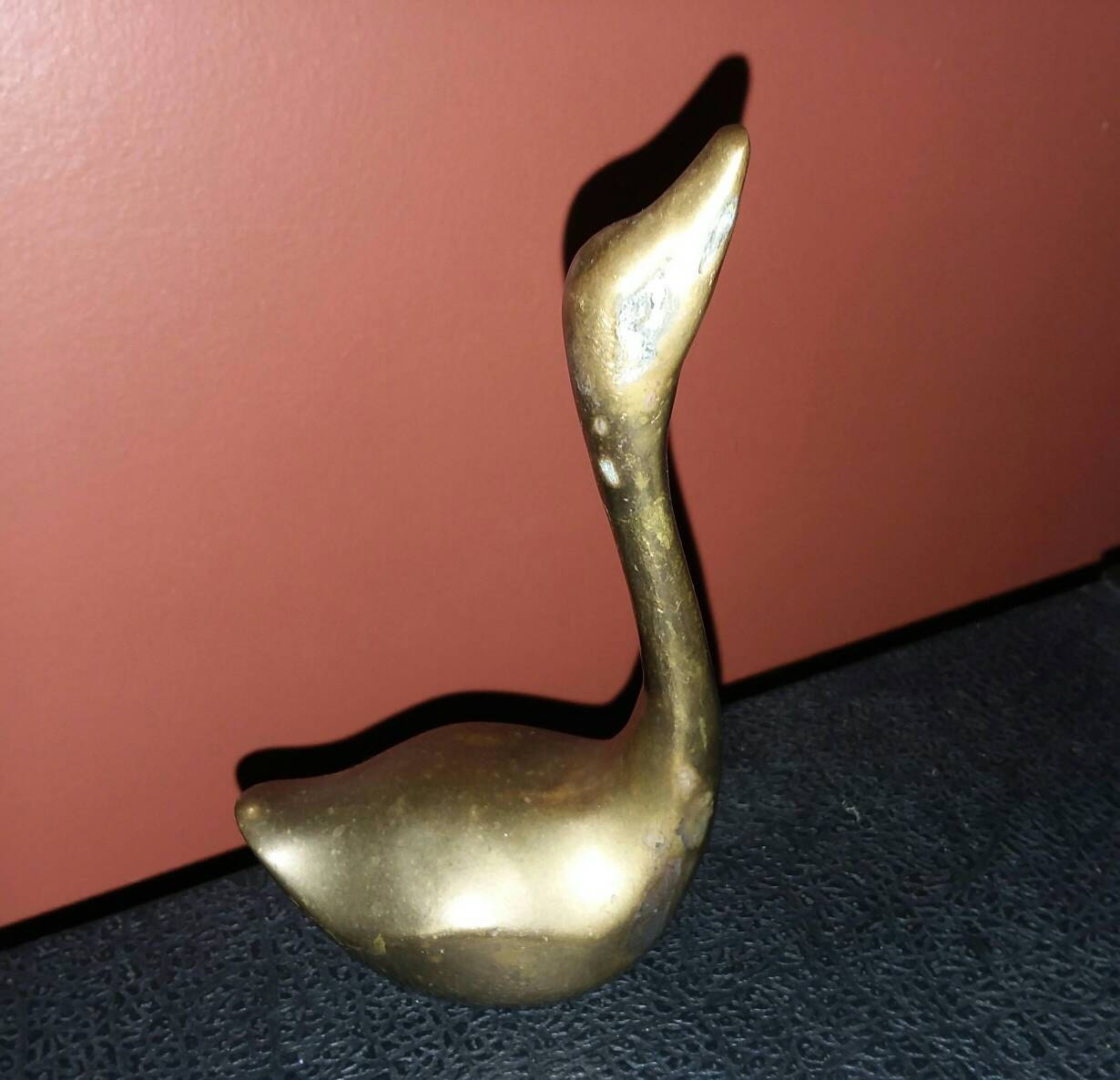 Lets get Brassy Long necked Goose. Has some nice patina on it. This is one of those brass collector pieces and just a fun little brass pal to have around. From the 70s.