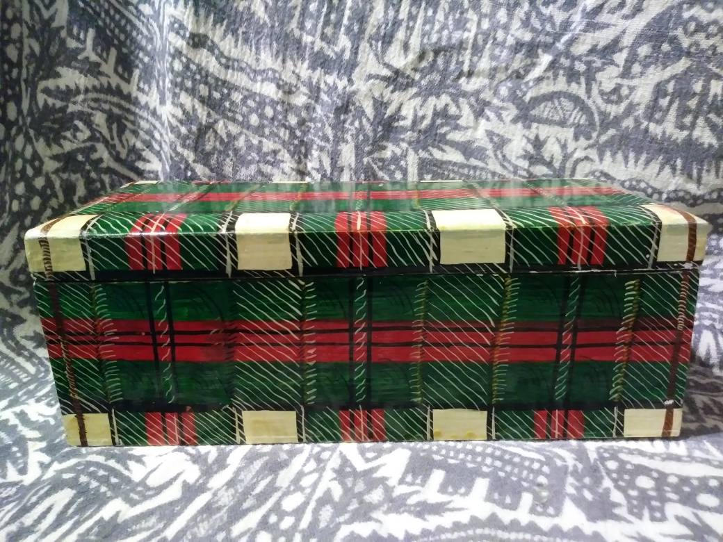 Wooden box Plaid vintage lacquered Scots say Tartan. 70s