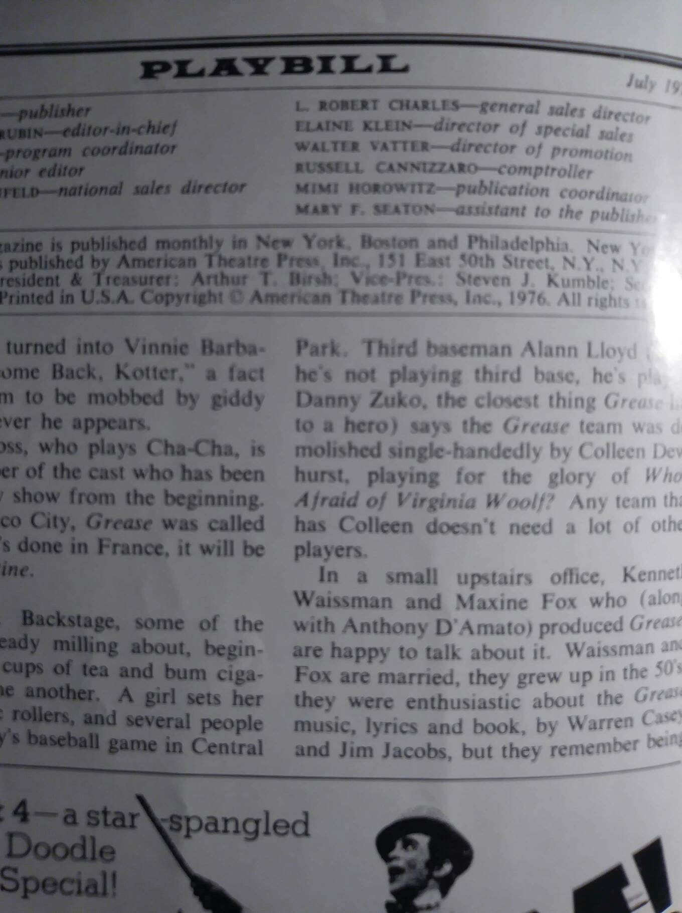One of the longest running shows on Broadway which opened in 1975. This Playbill is from 1976. It is in very good shape. The binding is secure and there are no tears or pages missing everything is in tack. Age wear, the paper not being acid free is a little yellowed from age.