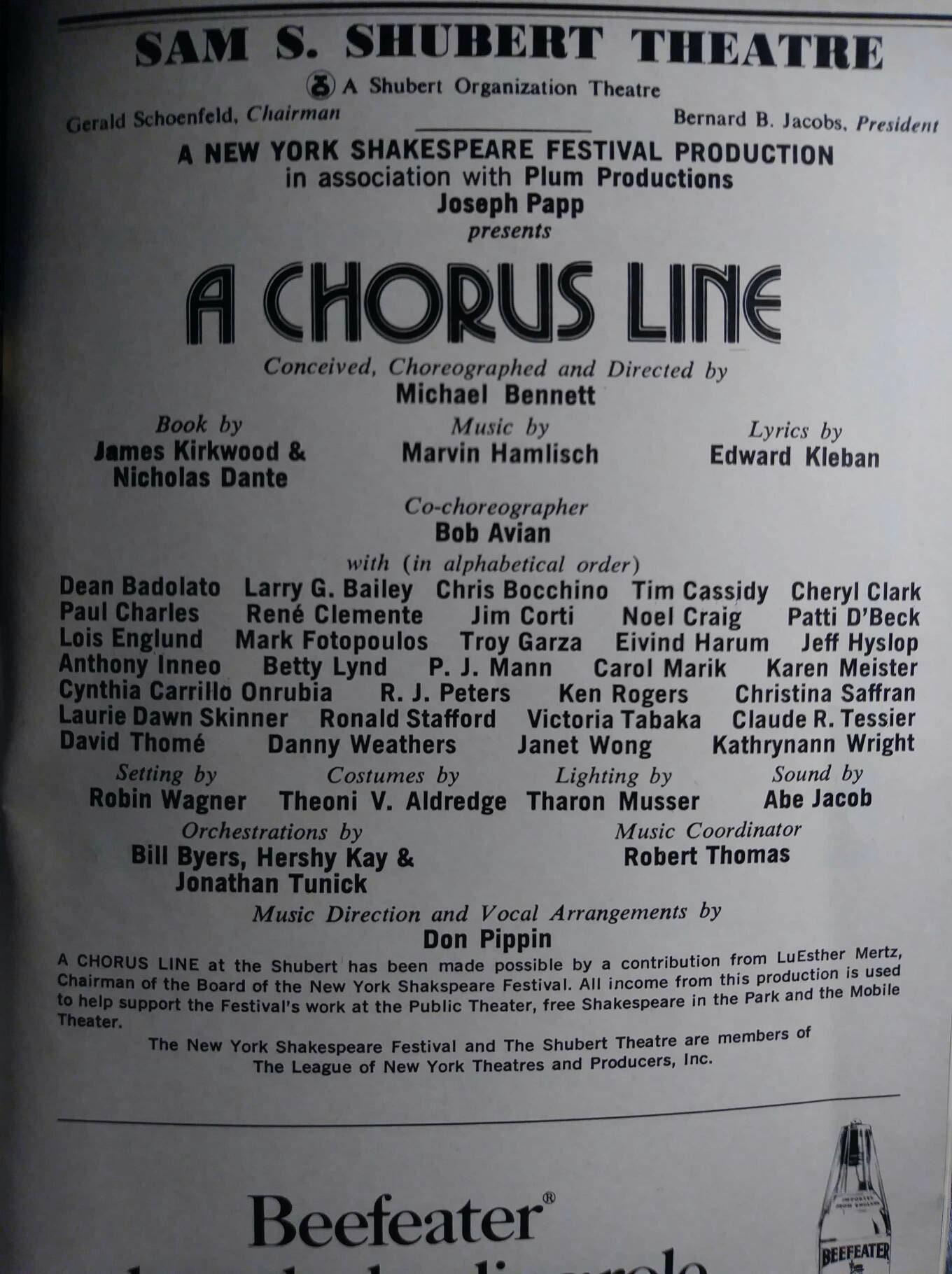 A Chorus Line Playbill Shubert Theatre New York 70s